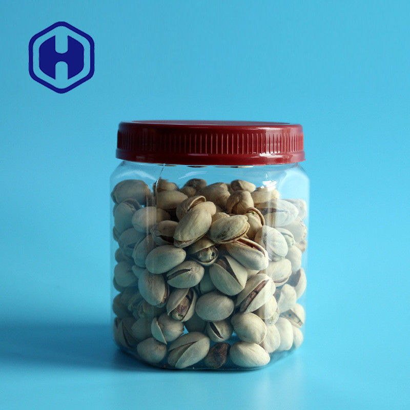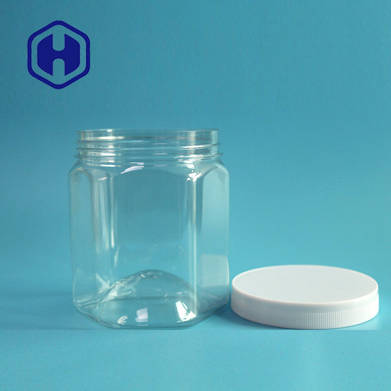 Bpa Miễn phí Thực phẩm An toàn Đồ ăn nhẹ Nắp vít 560ml 19oz Hũ PET lục giác có nắp đậy