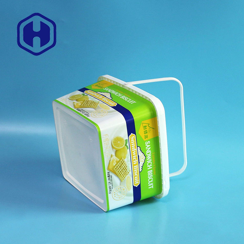Eco thân thiện dùng một lần tùy chỉnh bền hình vuông 2L nhựa bánh quy bánh quy IML hộp chứa bao bì